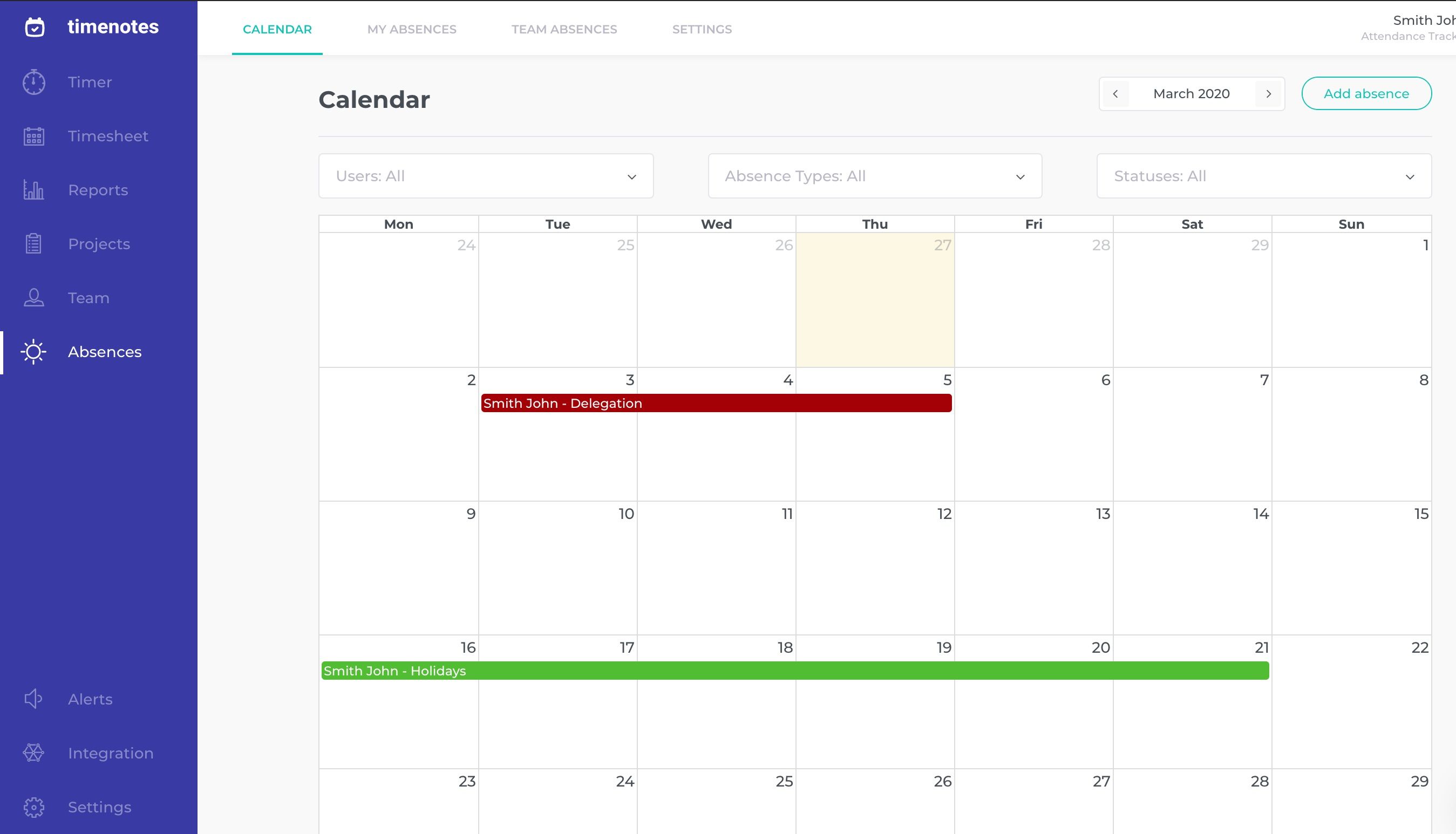 Plan your employee attendance by checking scheduled team vacation. Easily manage employee attendance, confirm absences requests and have your business under control. Check out the time off tracker.