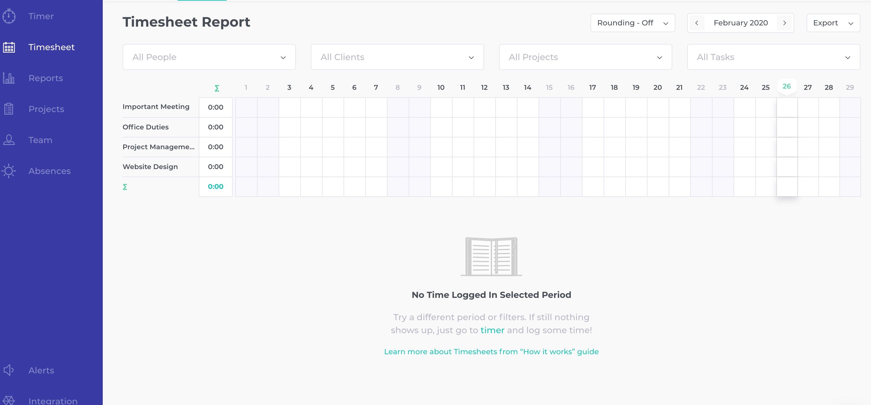 How does it work? Member signs up, chooses the activity and fills in the time. After that, you can right away see the work log in Reports and export it in the desired format.