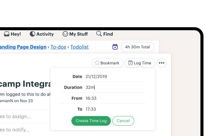 Add time tracking to any project directly in Basecamp