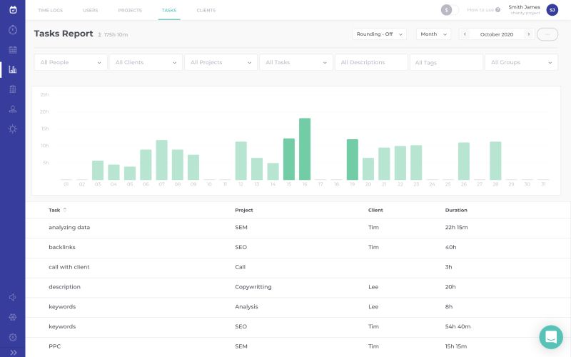 Use filters and choose what information you want to include in the report. Total cost of a certain task, summary of a week or maybe detailed information about working hours assigned to a project? Create the report instantly, export file into the desired format (CSV, PDF, XLS) and send the professional-looking report to your client.