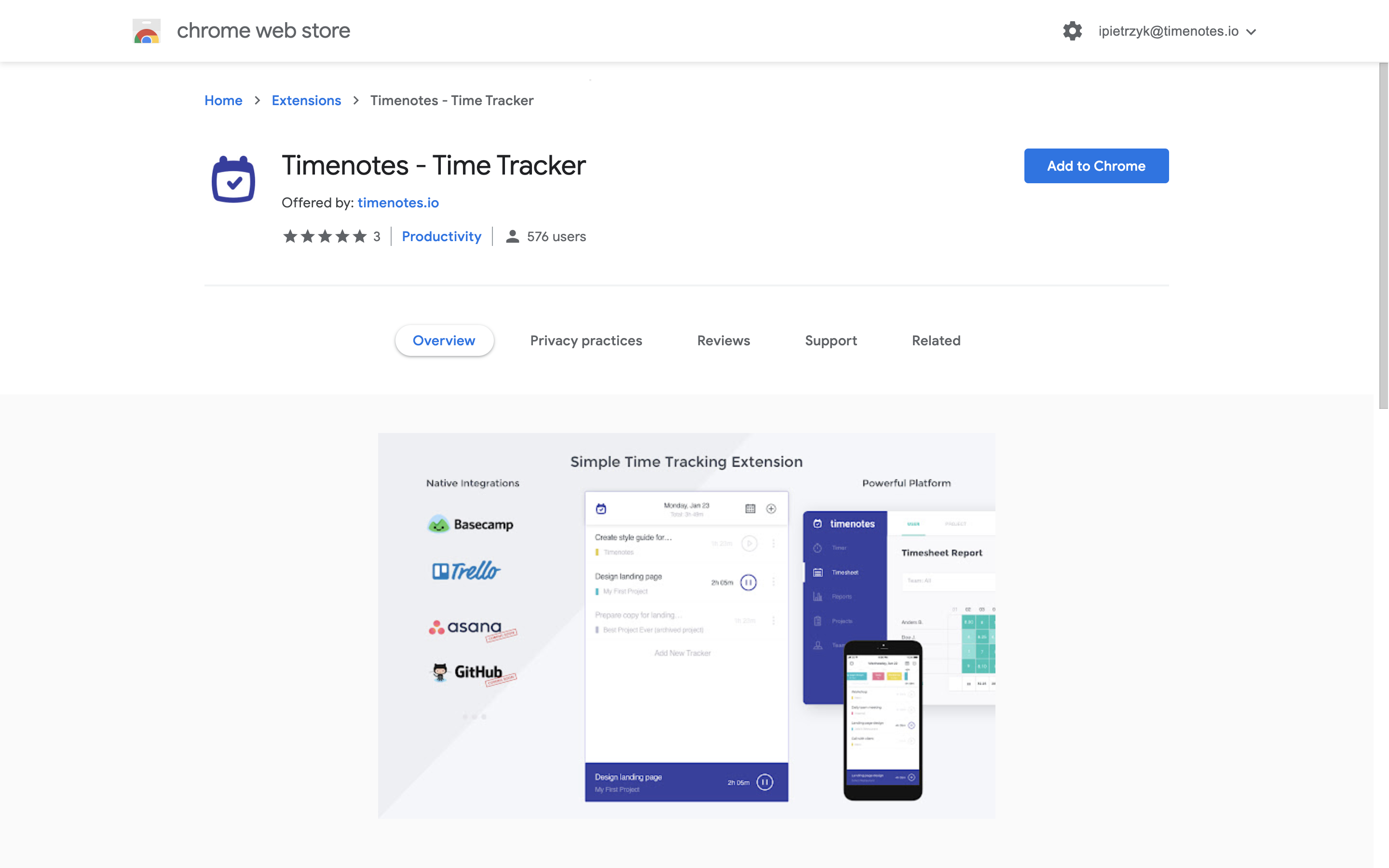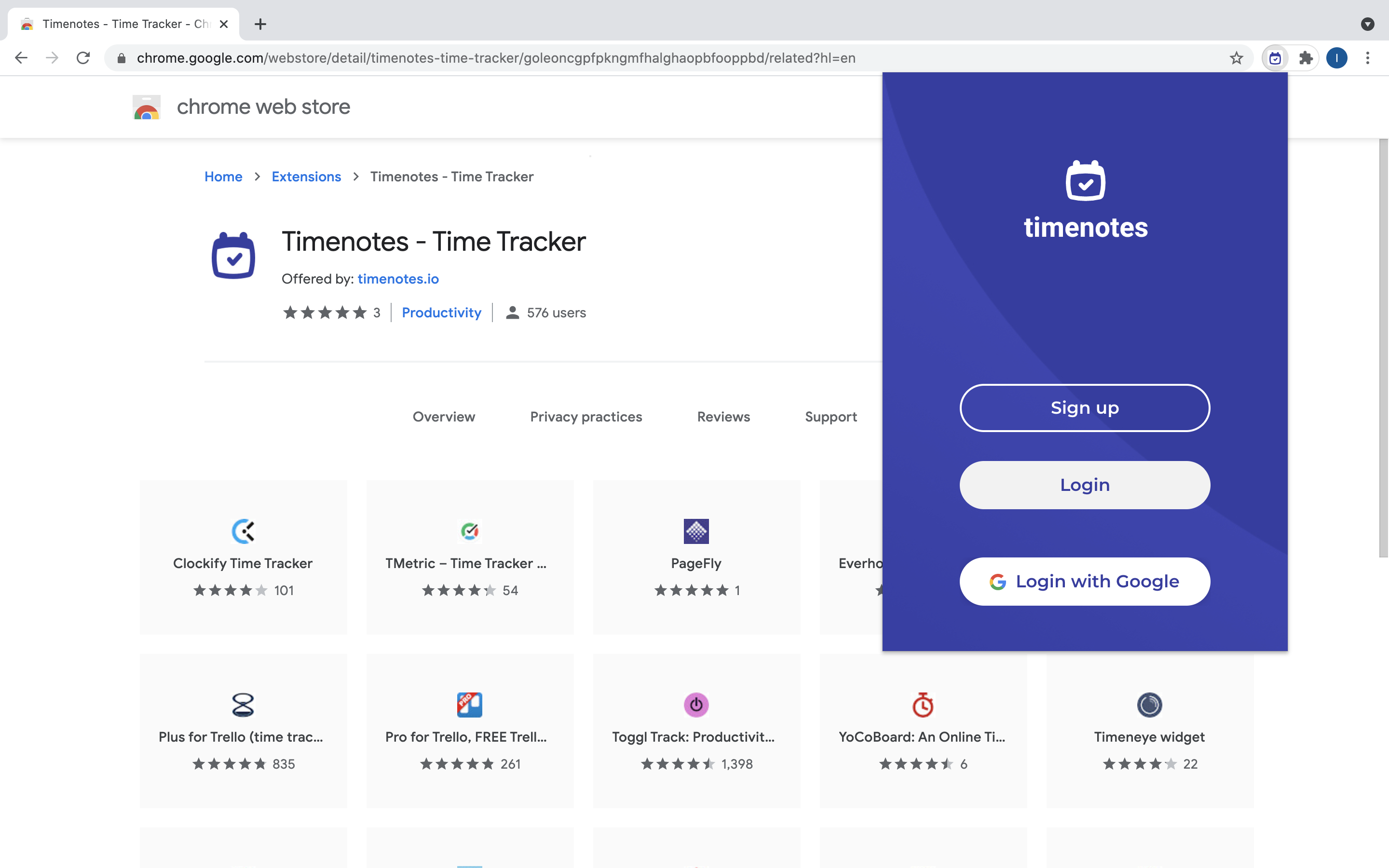 1. Instal Timenotes Google Chrome extension.