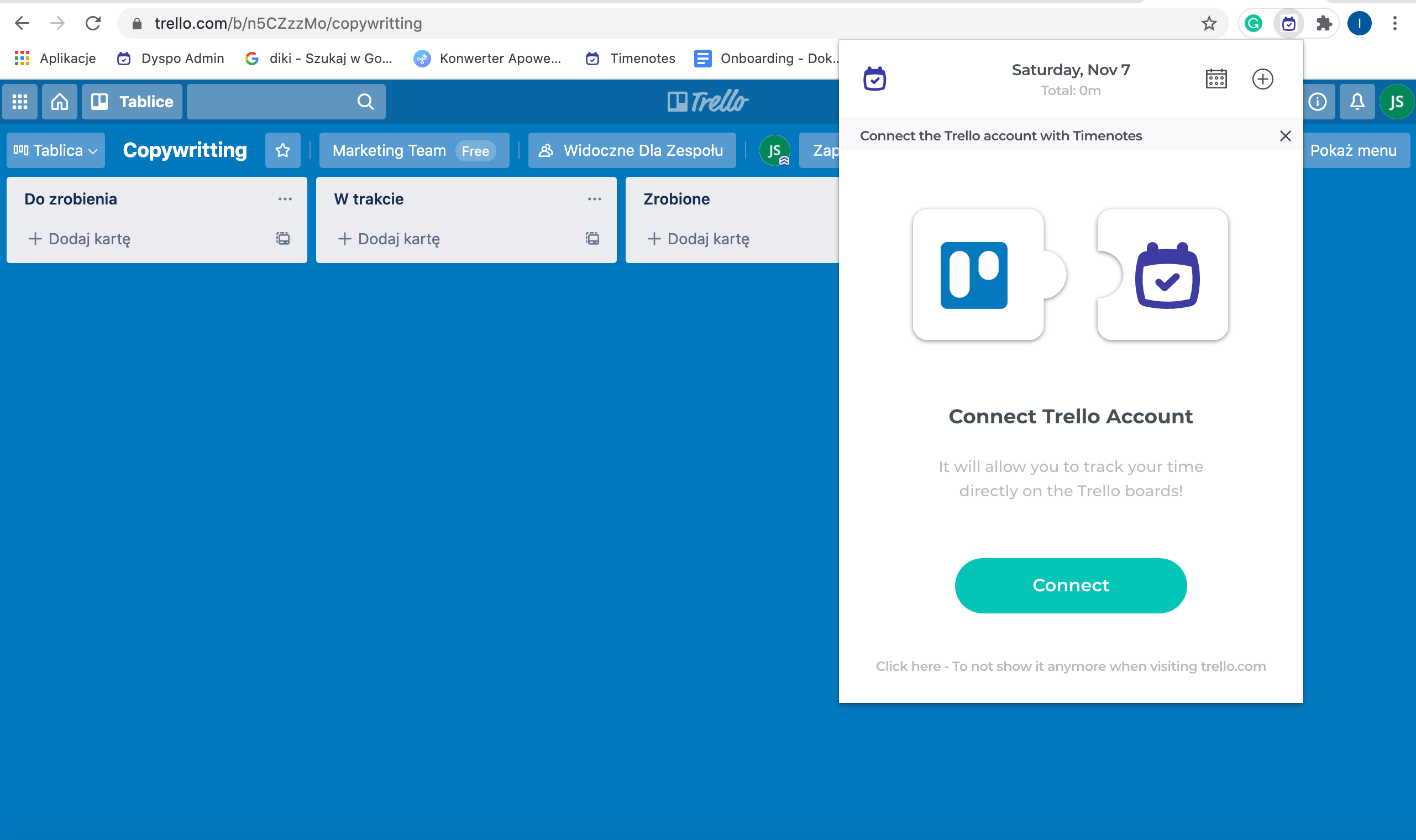 3. Connect Timenotes with Trello. There are two ways to do it: