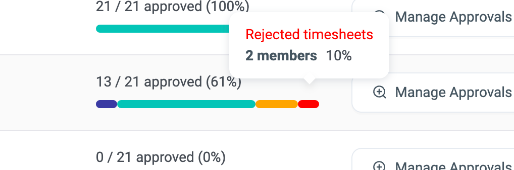 To understand the details, click "Manage approvals" to get a comprehensive view of the exact status for a given month or other approval periods.