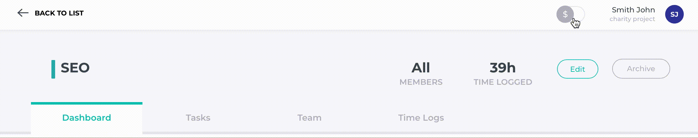 After you set the rates and budget for a project, you can constantly track its profitability. Enter the 'Projects' on the sidebar and select the project which you want to check.