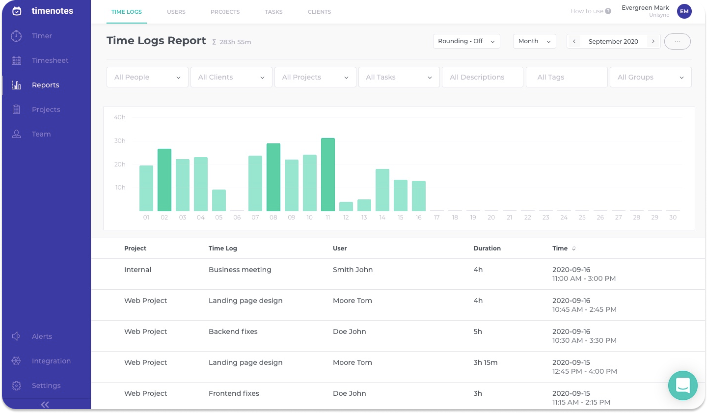 Timenotes is a great fit for all types of businesses, because it combines all the necessary features with additional ones, that make the experience feel right.