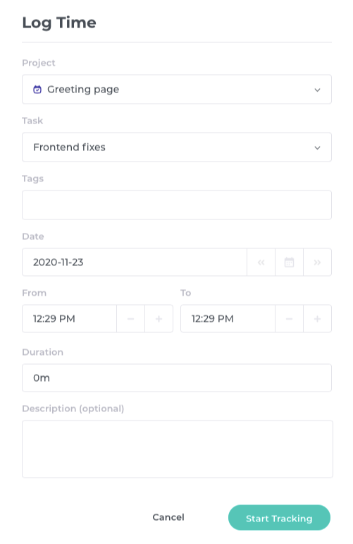 Enter the project and task name you're working on and start tracking! Synchronised across all platforms and devices, tracking ends only when you hit the stop button.