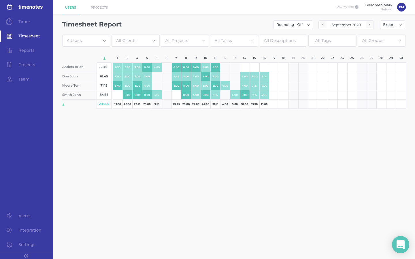 In contrast to regular timesheets, Timenotes lets you manage who can see what. Convenient, reliable, and easy to use online timesheets are made to easily spot who's slacking and who's overworked.