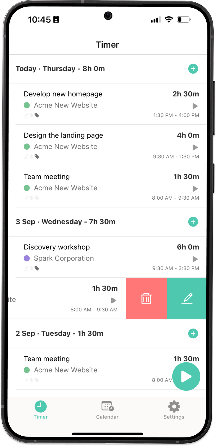 Turn your Android phone into a simple and powerful time tracker. Start and stop timers instantly, add quick entries, and stay in control of your work wherever you are.