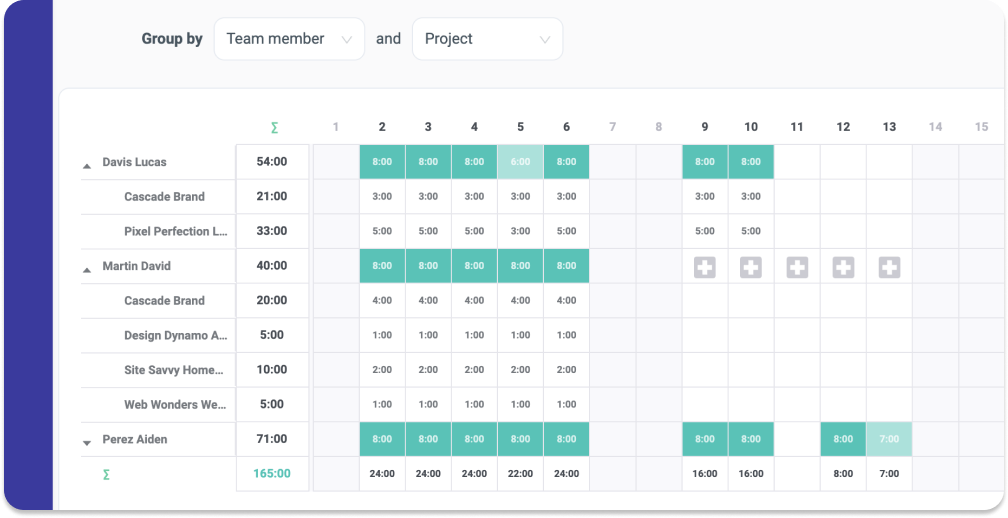 You can display your timelogs in a daily tracker or monthly timesheet, segregated by tasks and days.
