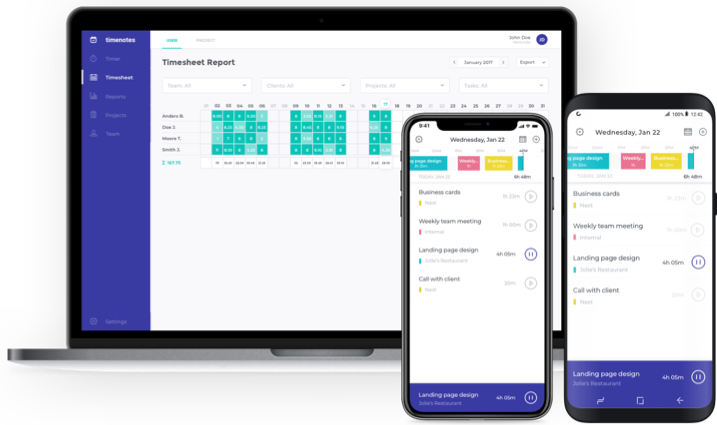Don’t worry if you’re working away from your computer. You can install Timenotes mobile app, available for iOS and Android, and track time anywhere.